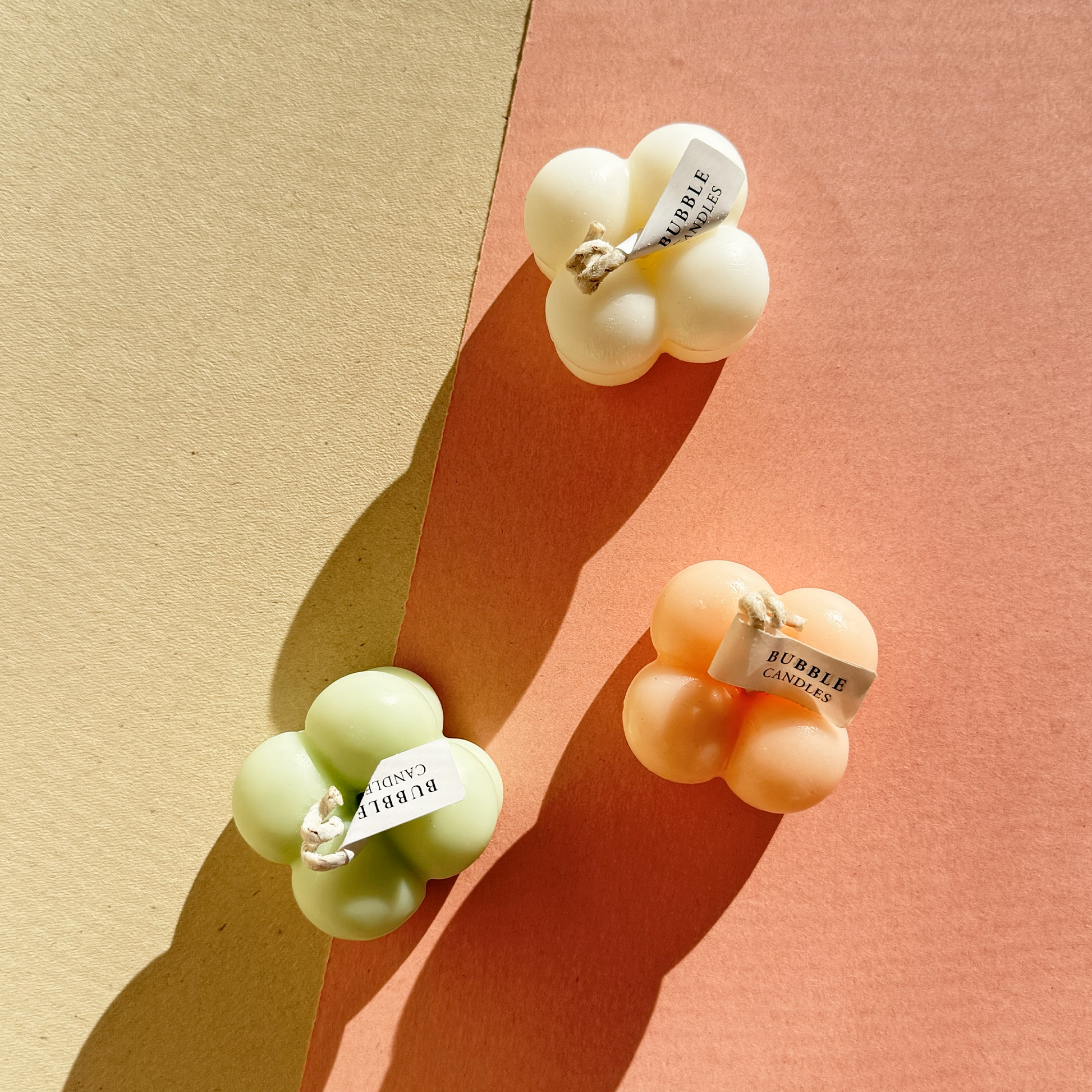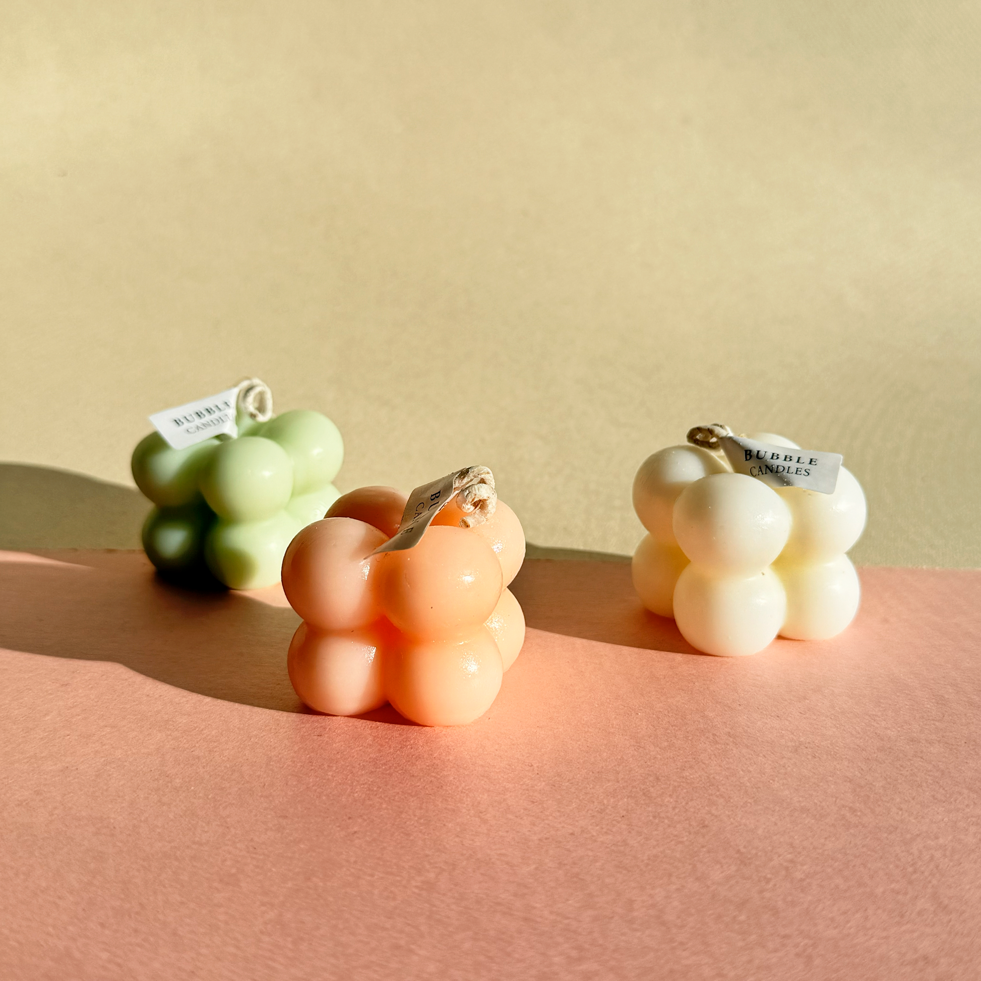 A soft sculptural candle in a warm blush tone. Designed as a small decorative accent with a gentle, modern scent.