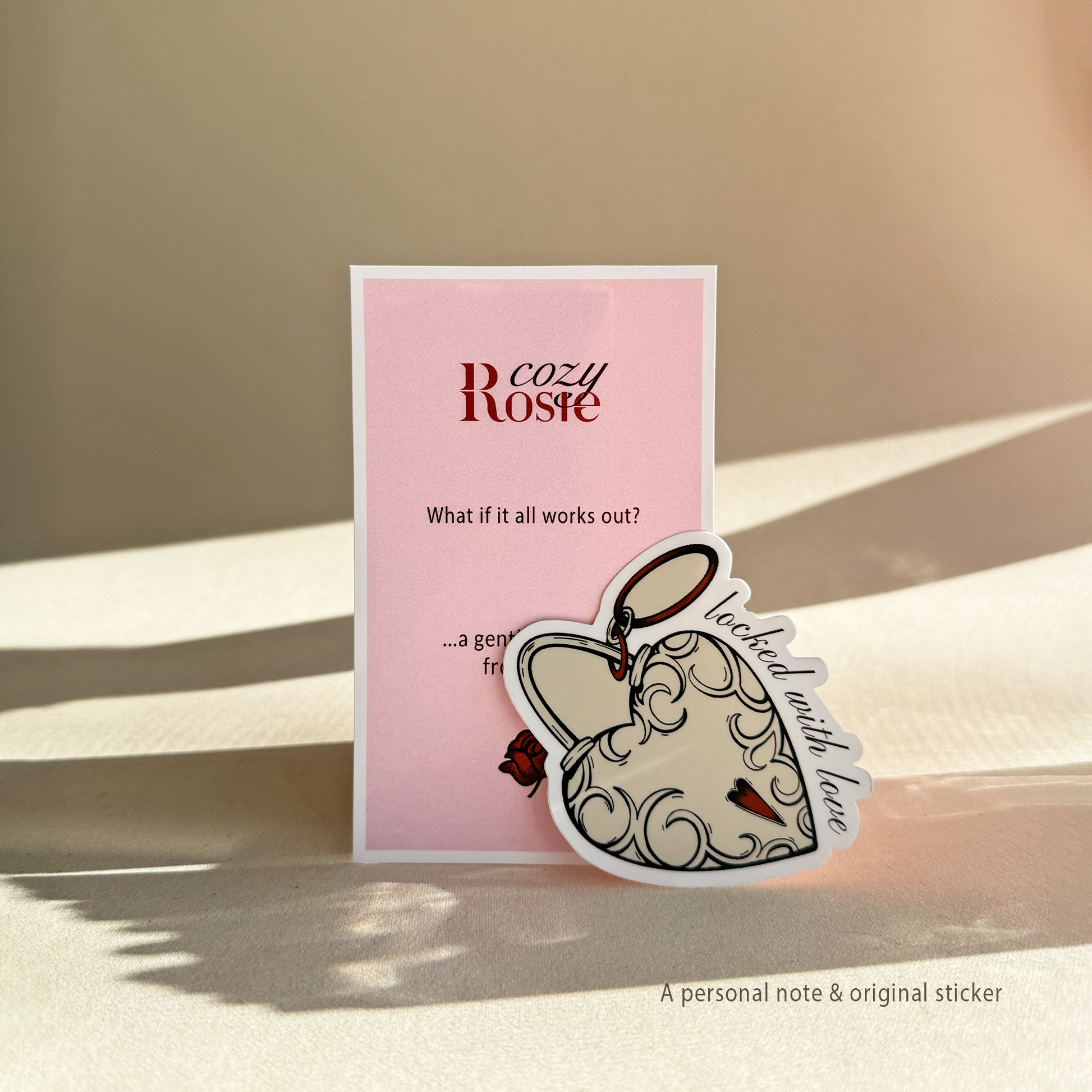 The sticker included in the set is an original Cozy Rosie design, created exclusively for the brand.